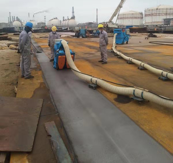 钢板除锈机又称为水平移动式抛丸机,该设备主要用于清除钢板表面的铁锈及氧化皮以便于做防腐处理,还可以用于大型船舶甲板,大型船舰舰体表面除锈清理。